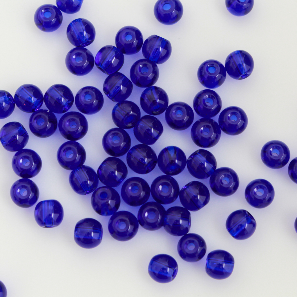 SKU: BD1626mm round glass beads in a dark midnight blue color that is transparent.