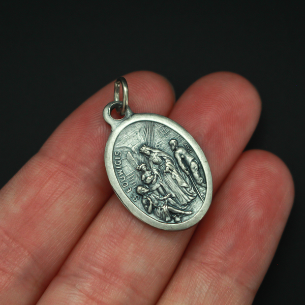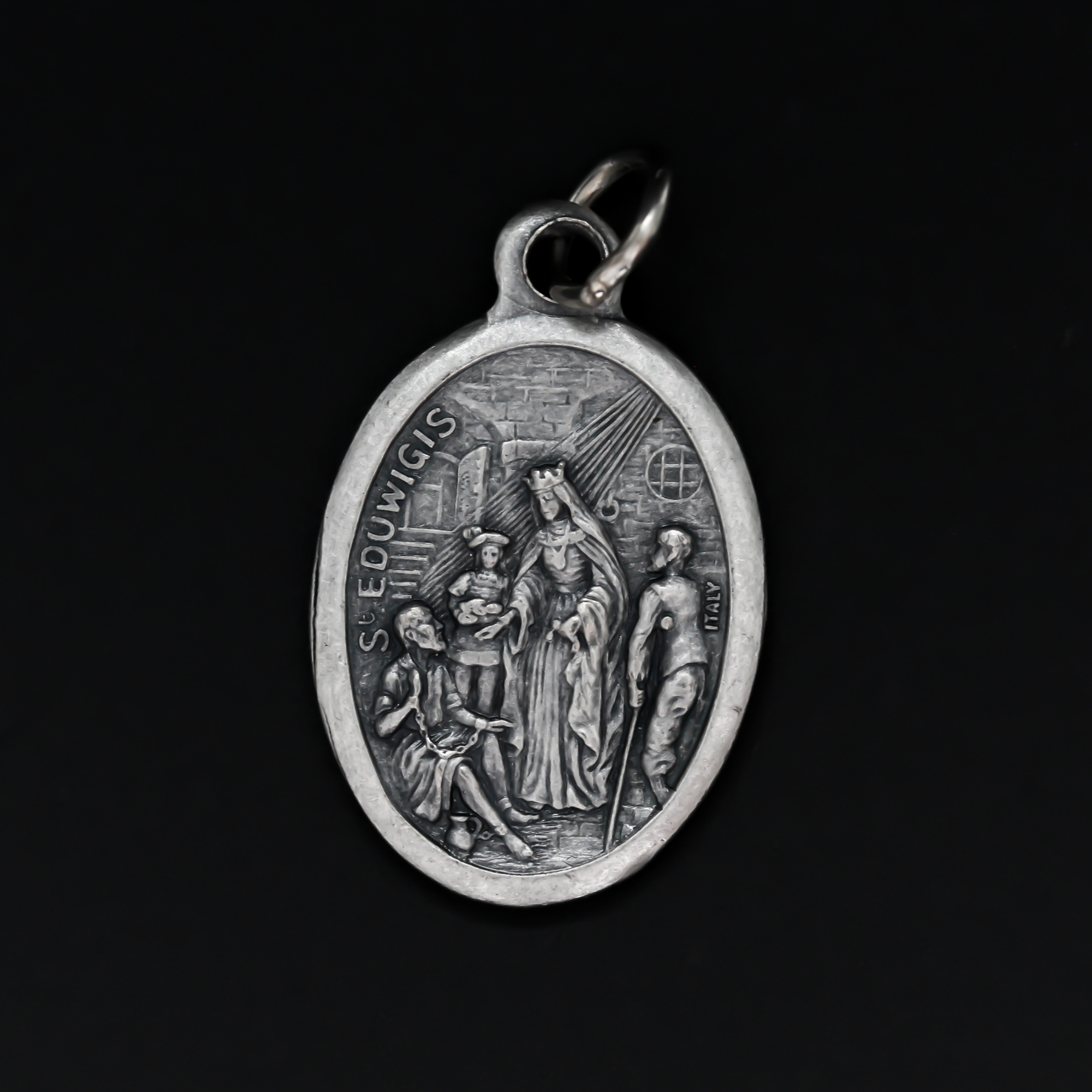 SKU: CM250Saint Hedwig of Silesia medal, also known as Hedwig of Andechs. This medals depicts the saint on the front helping the poor. Her name is written in the Spanish translation: Santa Eduvigis. The reverse side of the medal is marked "Pray for us". This detailed die-cast medal is made in the region of Italy that produces the finest quality medals in the world.