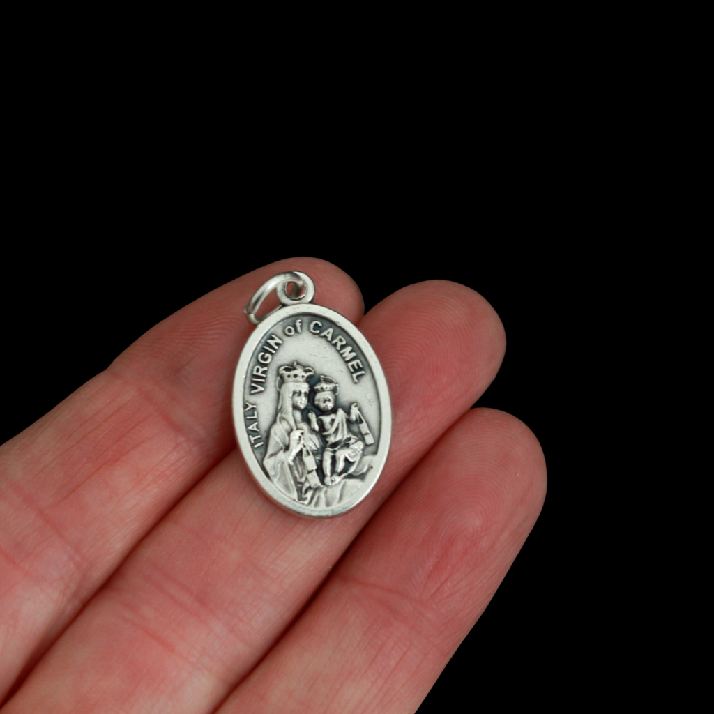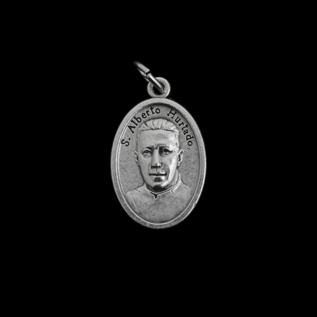 Saint Albert Hurtado medal that features the saint on the front and the Virgin of Carmel on the backside. St. Alberto Hurtado was a twentieth-century Chilean Jesuit known for his work helping revive the Church in Chile as well as providing shelter for those in need. He maintained a deep, lifelong devotion to the Virgin Mary, viewing her as a maternal guide in his ministry to the poor. He intentionally entered the Jesuit novitiate on August 15, the Feast of the Assumption, to honor her. He famously prayed the rosary nightly, regardless of his exhaustion