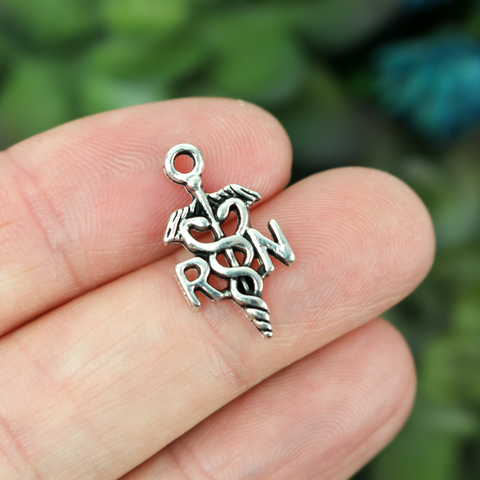 Medical Symbol Caduceus Charms RN for Registered Nurse - Silver Tone 10pcs