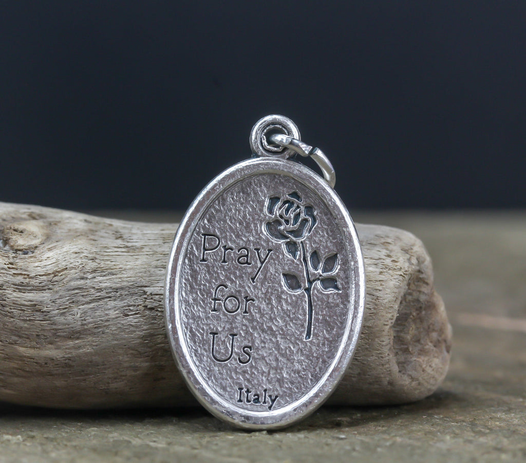 Madonna of the streets oval religious medal inspired by the Madonna of the Streets painting by Roberto Ferruzzi. The front of the medal depicts the Blessed Virgin Mary holding the baby Jesus. The actual inspiration for the painting was a young girl, carrying her little brother, but it was said that Italian Catholics took the painting as that of the Virgin Mary carrying the infant Jesus. Even without any initial religious context, this image became an icon of the Catholic faith. This medal is the perfect religious gift for young mothers who recently gave birth. This detailed die-cast medal is made in the region of Italy that produces the finest quality medals in the world.