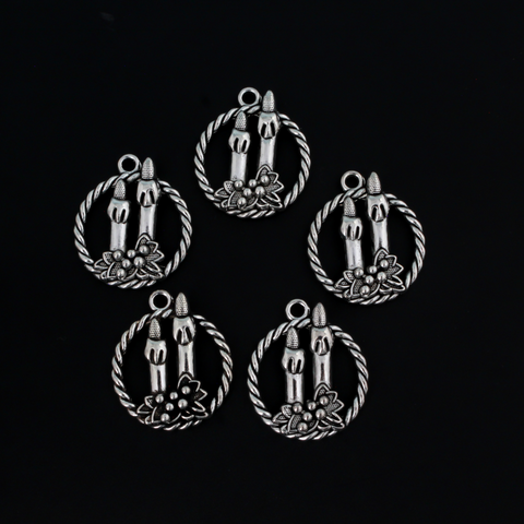 Christmas Candle Wreath Charms in Antique Silver Color, 30mm long - 5pcs