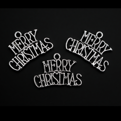 Merry Christmas Charms 1" wide Word Quote Charms - Antiued Silver Tone - 3pcs