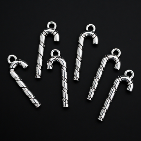 Christmas Candy Cane Charms - Antiqued Silver Tone 25mm long - 25pcs