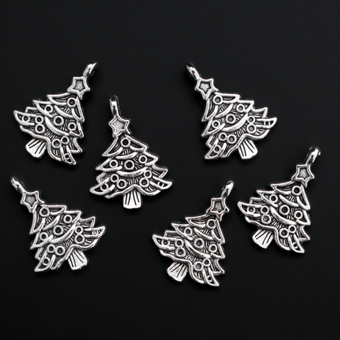 Christmas Tree Charms - Antiqued Silver Tone 24mm long - 25pcs