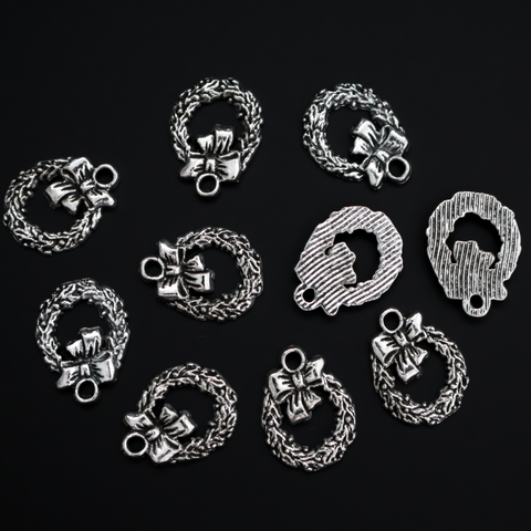 Christmas Wreath Charm - Antiqued Silver Tone 15.5mm long - 25pcs