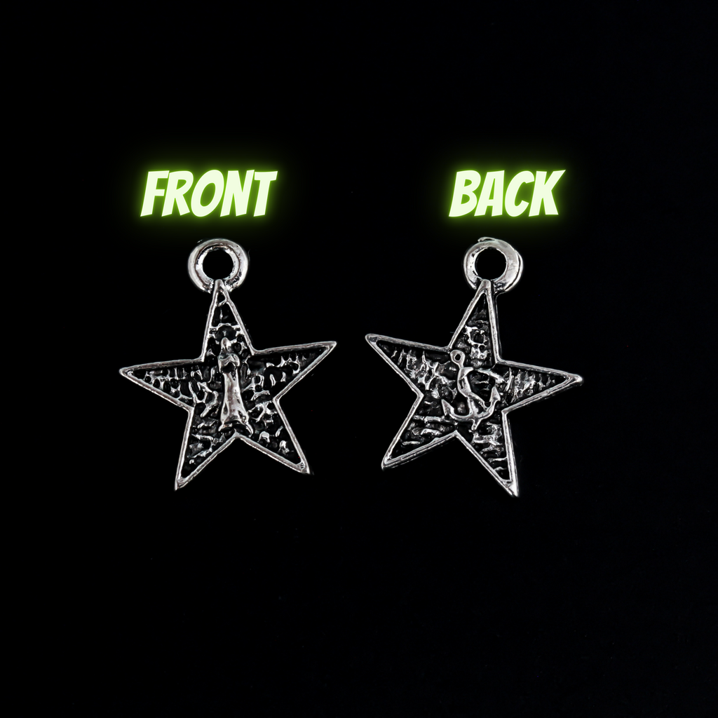 SKU: CH190Small star-shaped charms that feature The Blessed Virgin Mary as Our Lady of the Sea on the front side and an anchor on the backside.