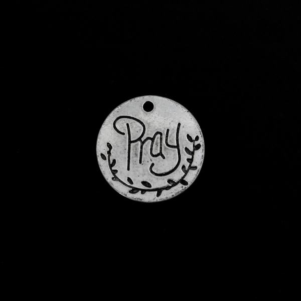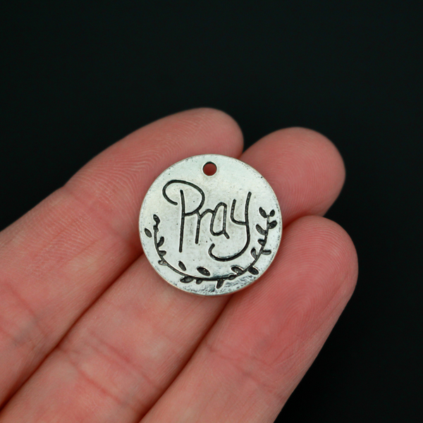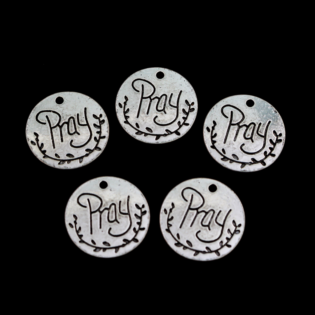 Pray Charms 20mm Round Antique Silver Pendants - 5pcs