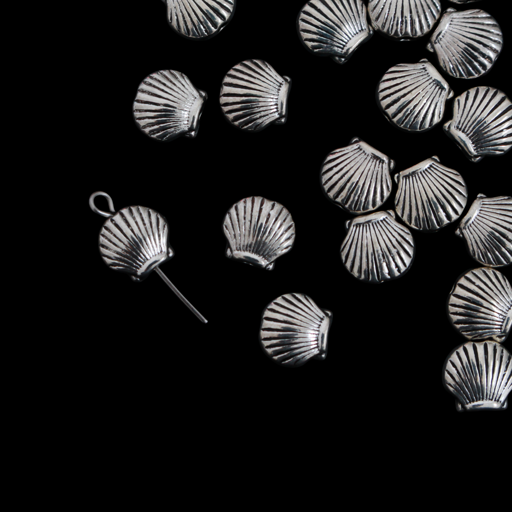 SKU: CH12ASmall silver-tone scallop shell spacer beads that are double sided meaning they look the same on both sides.