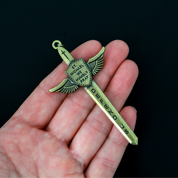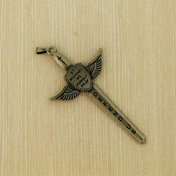 St. Michael's Sword Pendant in Antique Bronze, 3" Long