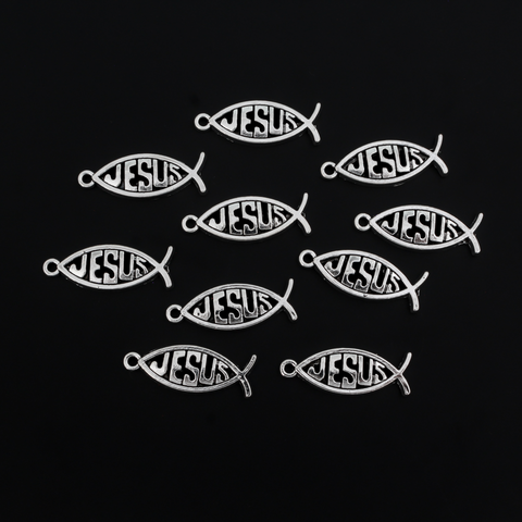 Silver Jesus Fish Charms Christian Ichthys Symbol 27mm Long, 10pcs