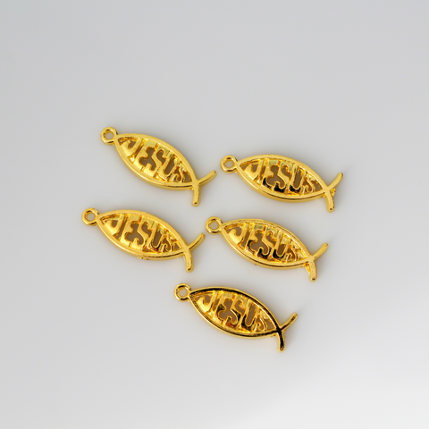 Gold Jesus Fish Charms Christian Ichthys Symbol 27mm Long, 10pcs
