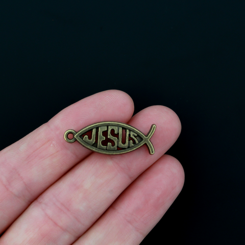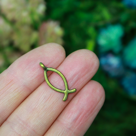 Bronze Jesus Fish Charms - Christian Ichthys Symbol, 25pcs