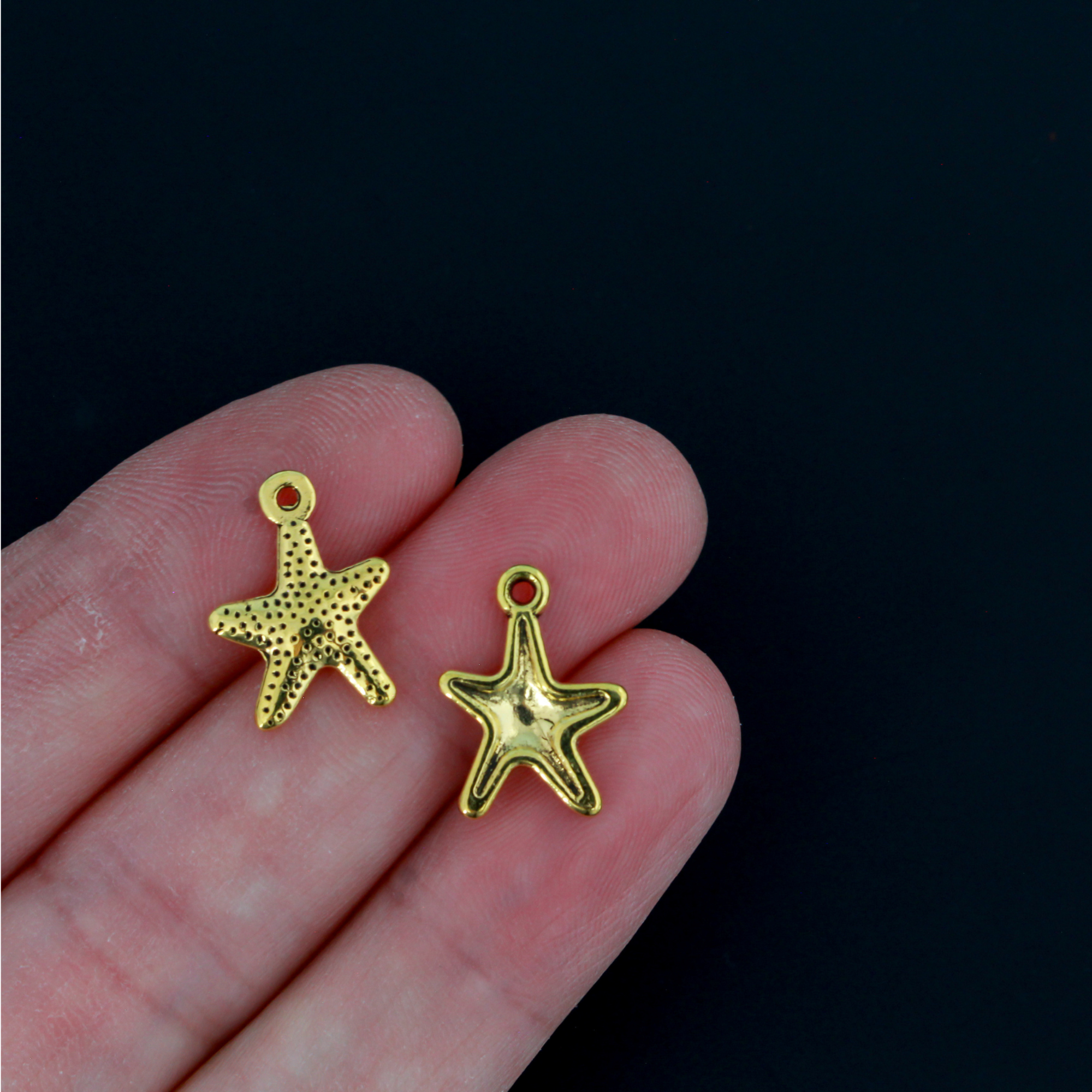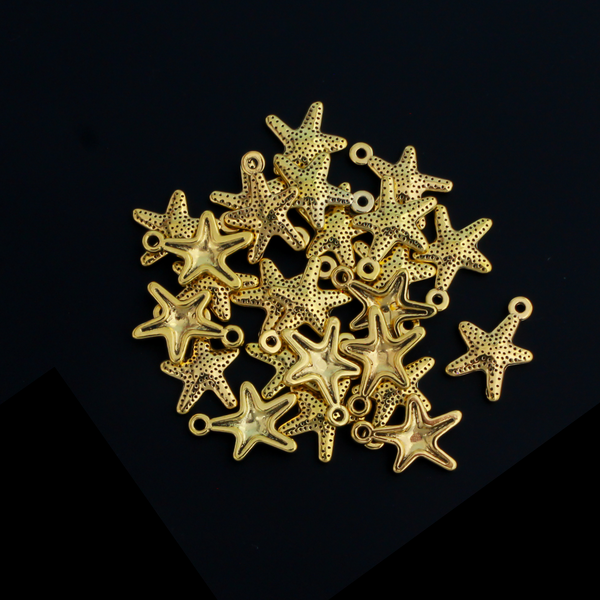 Starfish charms in an antiqued golden color.