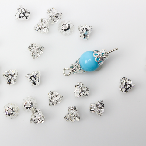 Filigree Bead Caps 6mm in diameter x 5mm long Shiny Platinum Color (Fits beads 6 - 8mm) 120pcs