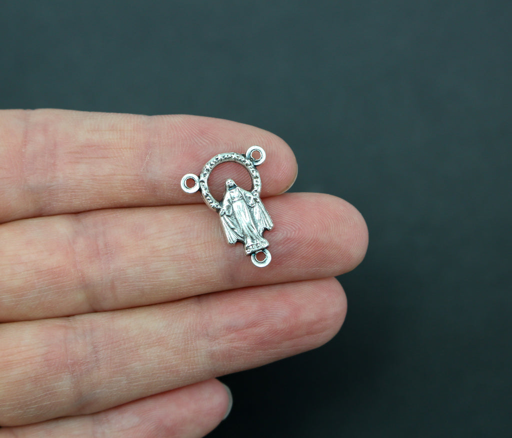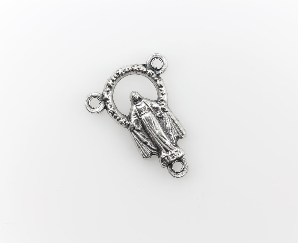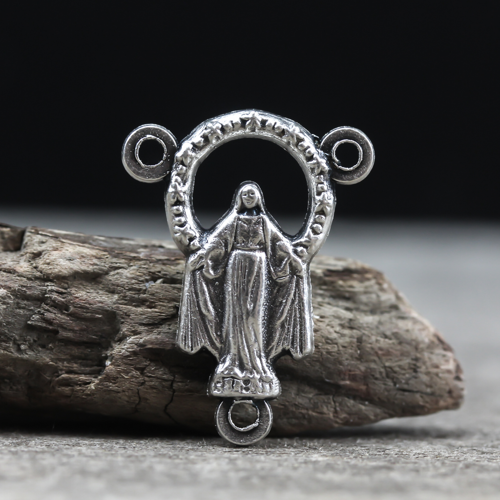 SKU: RCP26AOur Lady of Grace rosary centerpiece with a cutout design of a halo surrounding her head. This silver oxidized rosary centerpiece has gorgeous details and would be a lovely addition to your next rosary. It is imported from Italy and ready to be used in your next jewelry design.