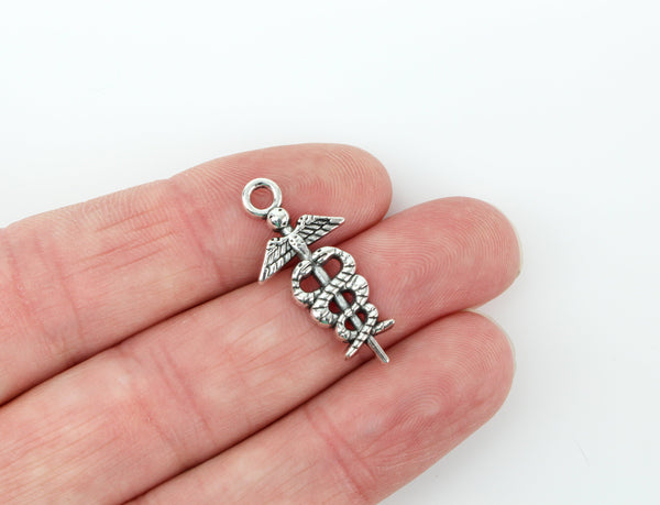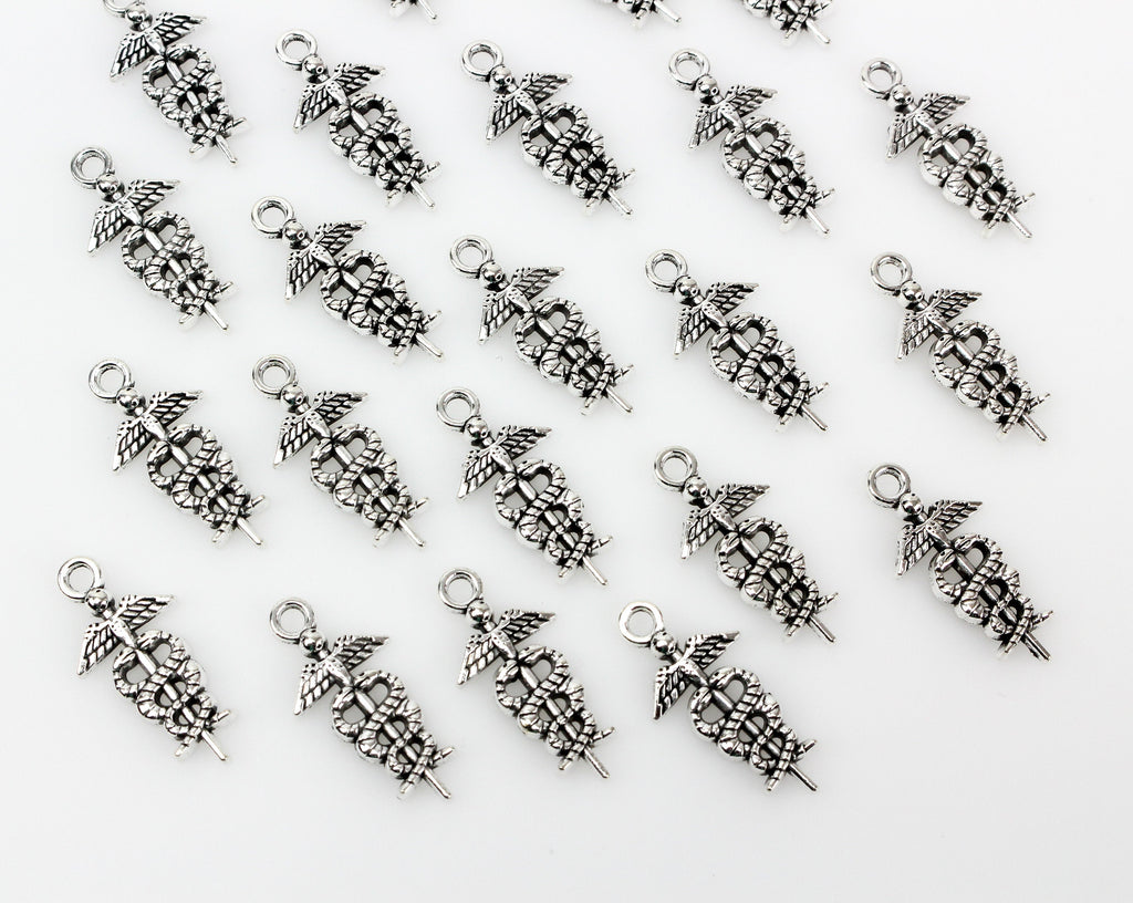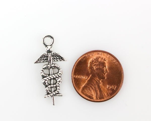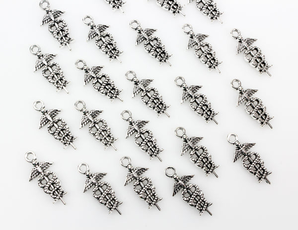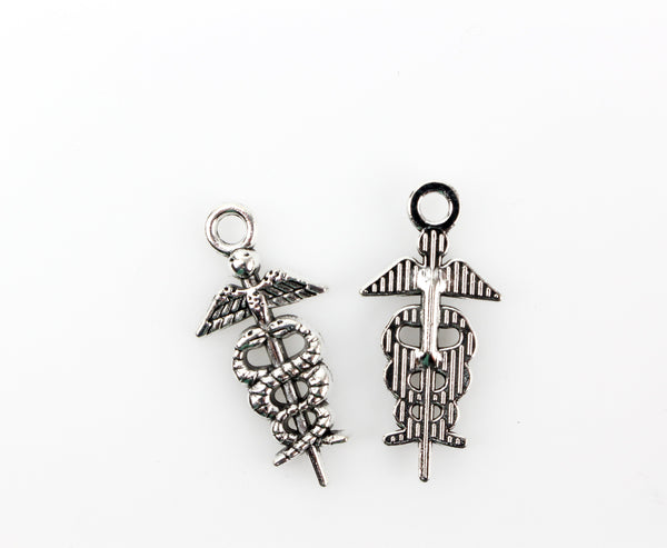 Medical Symbol Caduceus Charm - Silver Tone 10pcs
