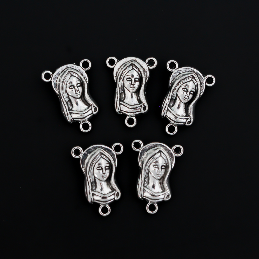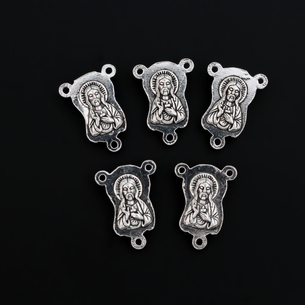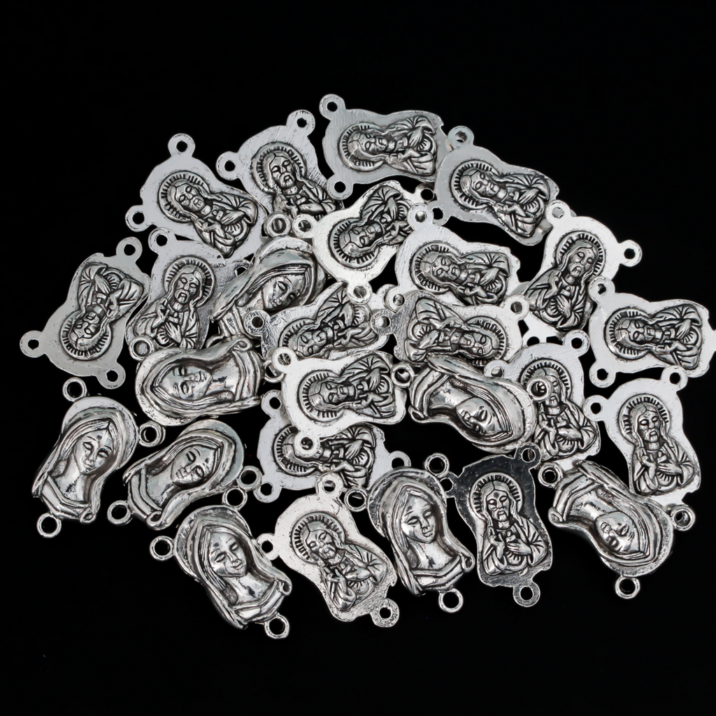 Blessed Virgin Mary & Sacred Heart of Jesus Rosary Centerpieces, Antique Silver 20x15mm - 5pcs