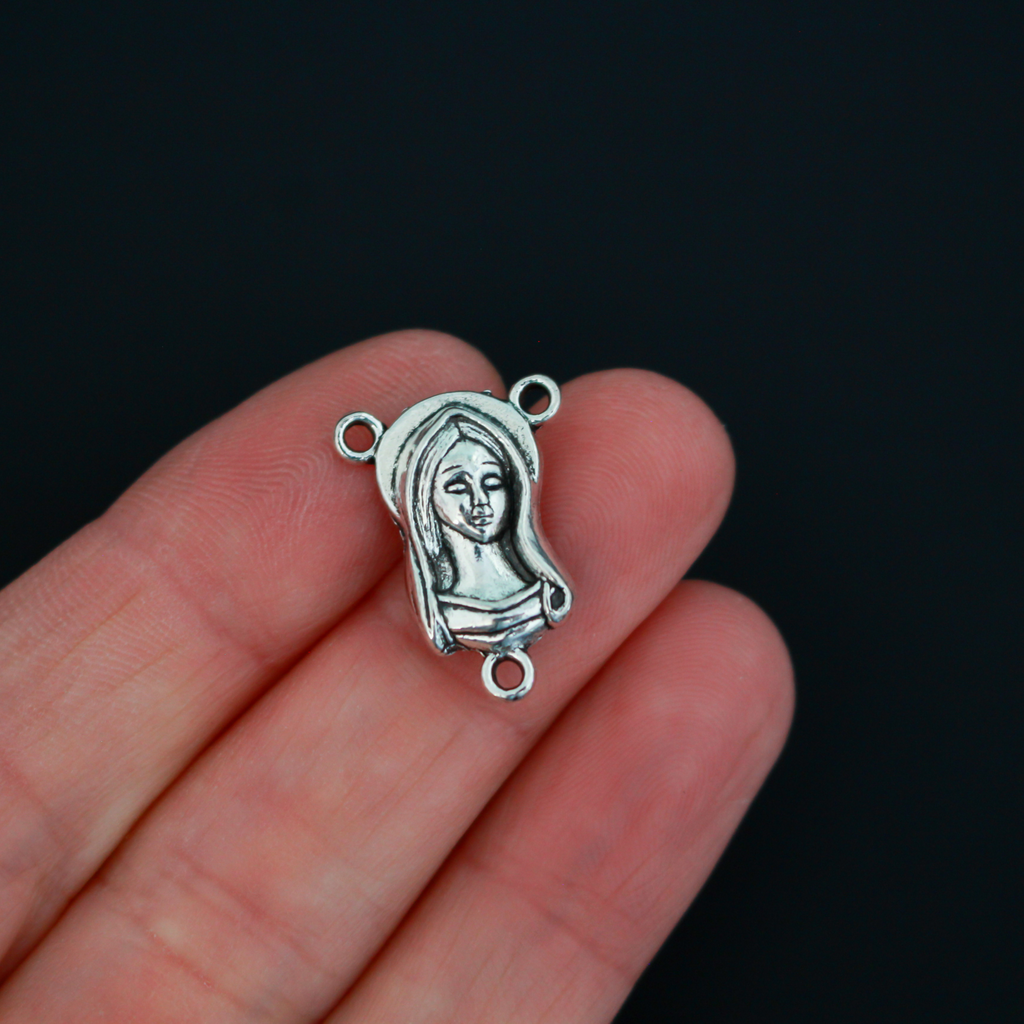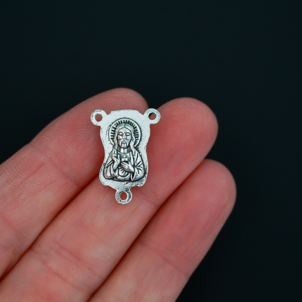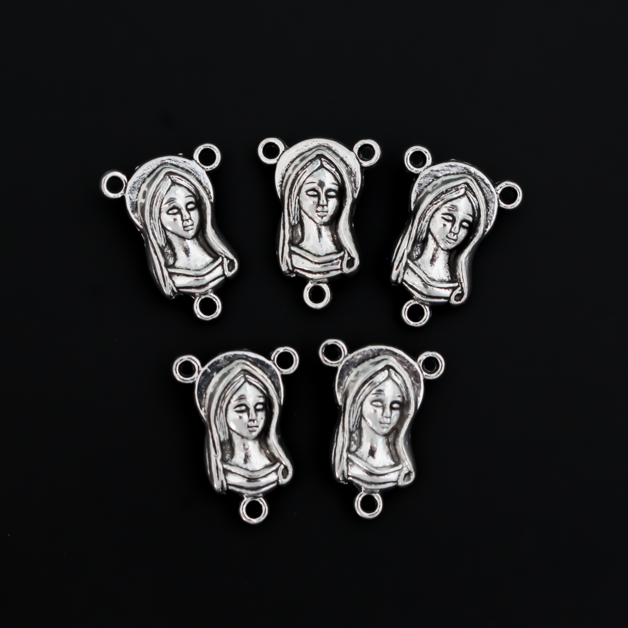 Blessed Virgin Mary & Sacred Heart of Jesus Rosary Centerpieces, Antique Silver 20x15mm - 5pcs