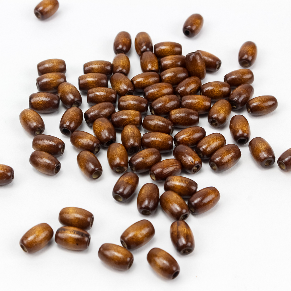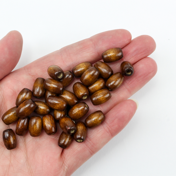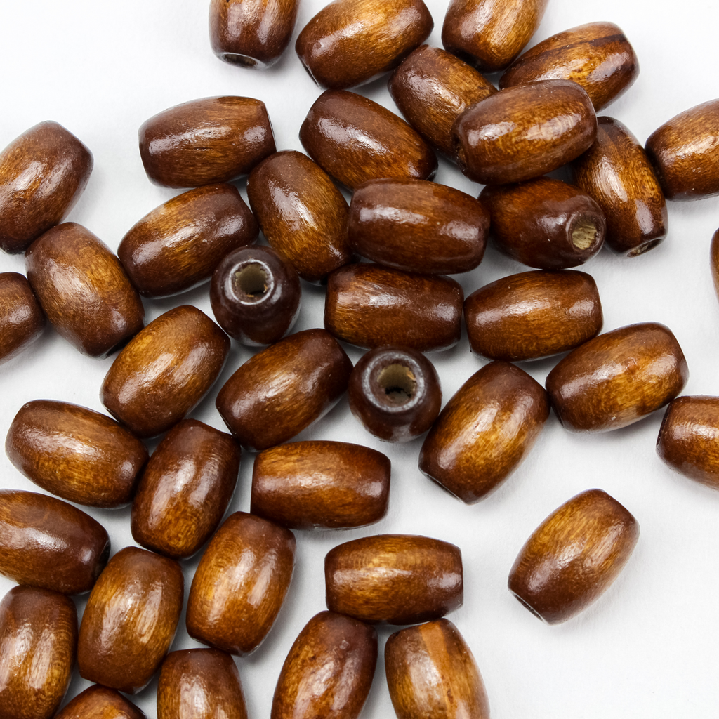 SKU: BD1560 brown wooden beads that are 12mm long and 8mm wide with a 2.7mm hole size. Sold in packages of 60 beads, enough to create one five-decade rosary.