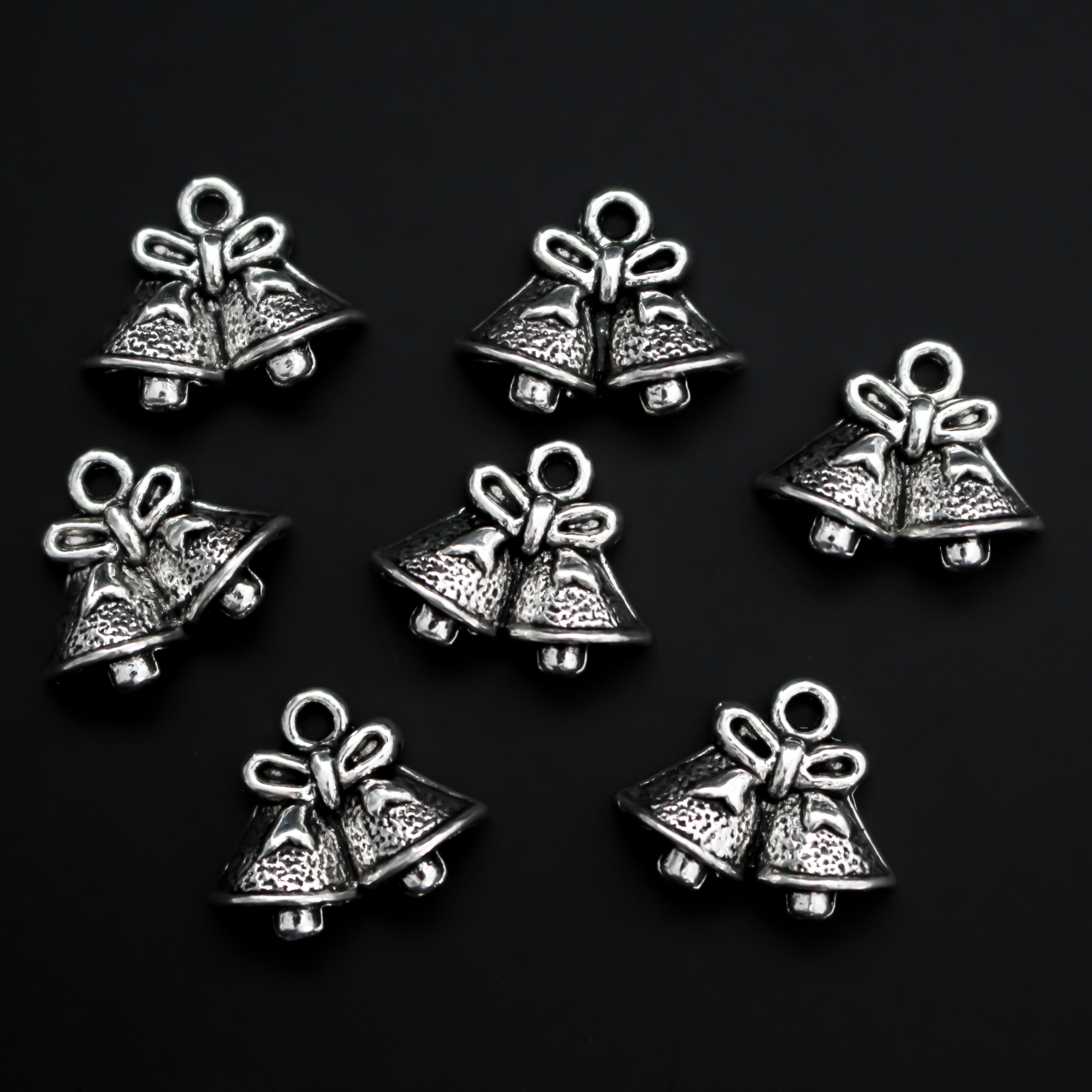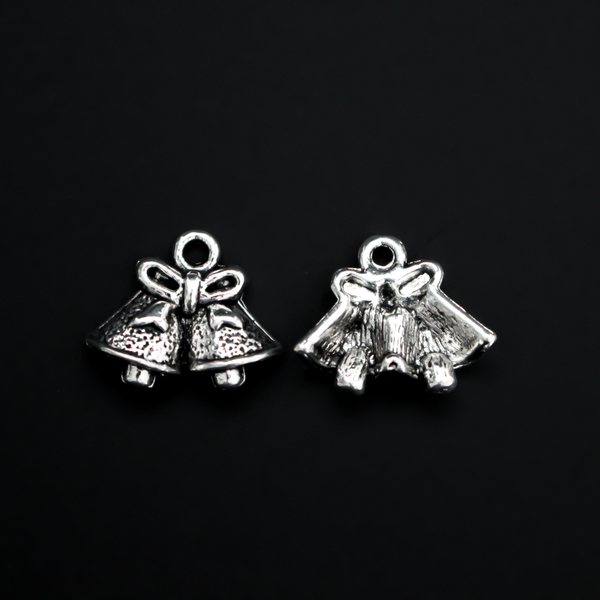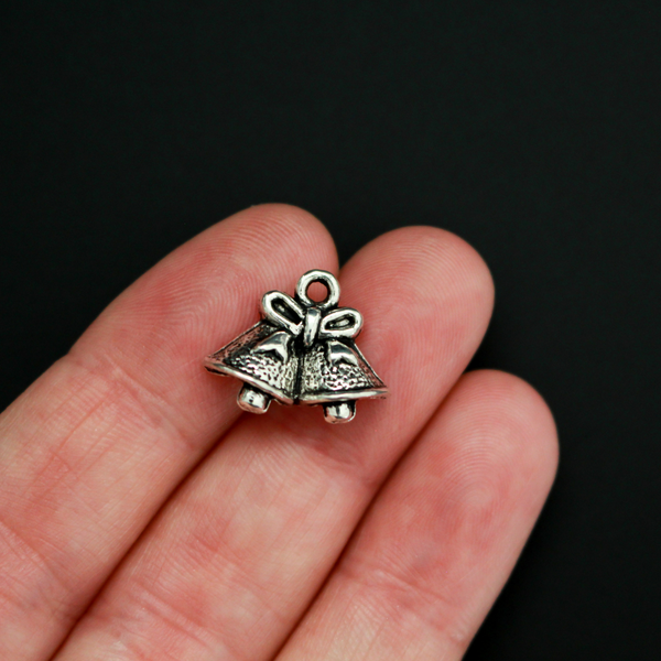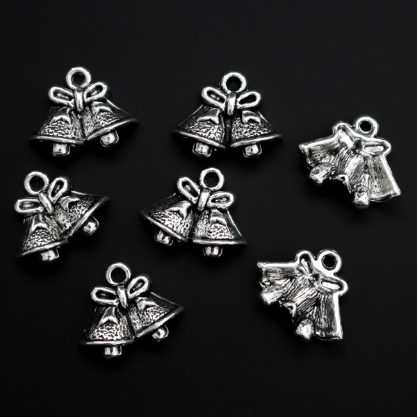 Christmas Bell Charms - Antiqued Silver Tone 14mm long - 25pcs