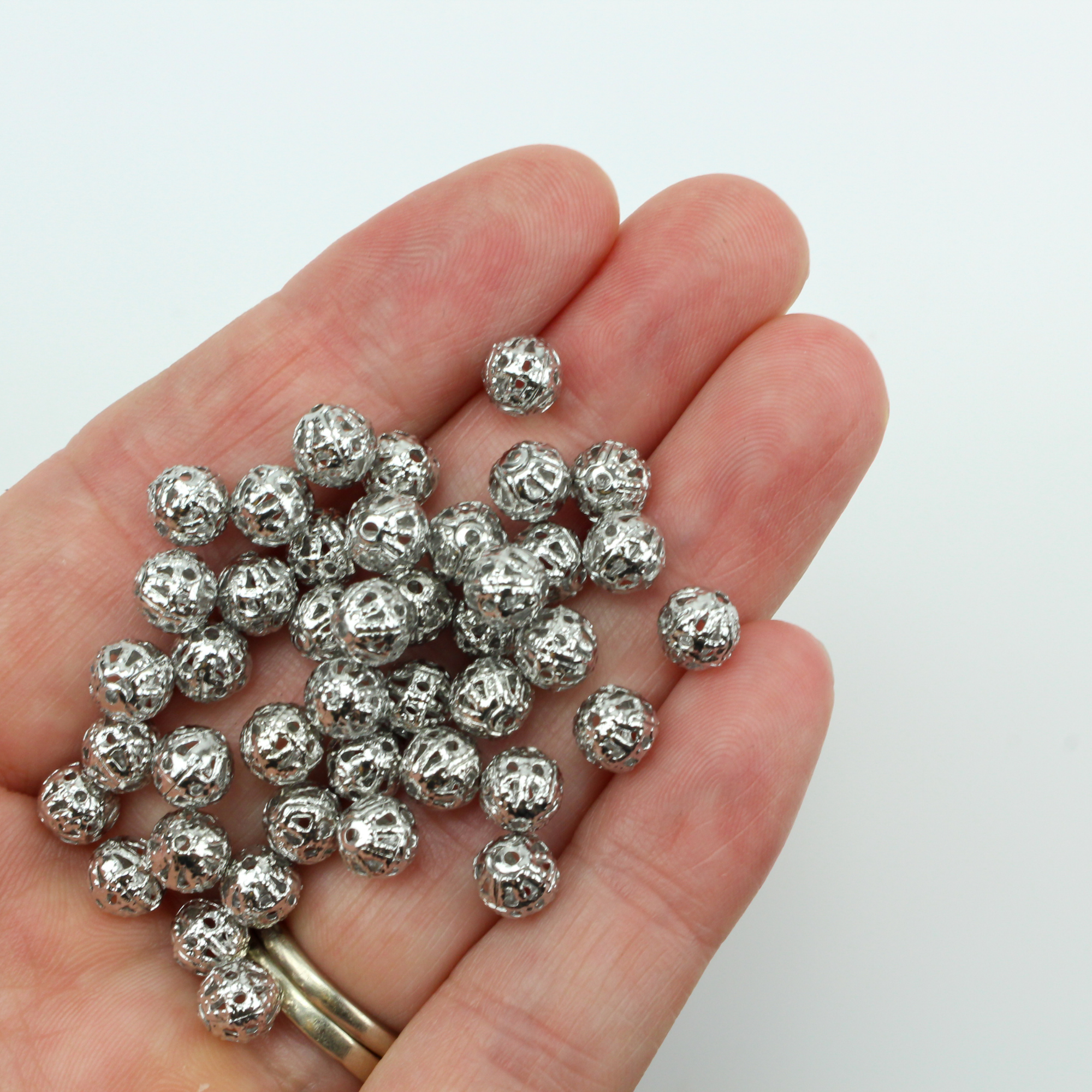 Filigree Metal Beads 6mm Round Antique Silver Color - Prayer Beads for Five Decade Rosary 60pcs