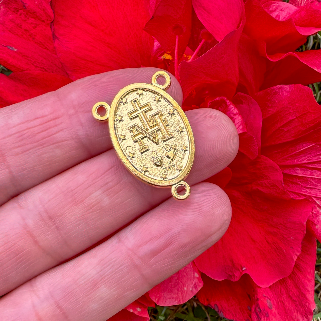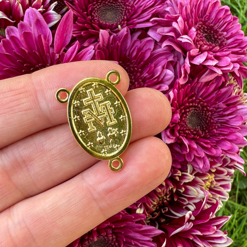 Gold Miraculous Medal Rosary Centerpiece - Handcrafted in Italy with English Inscription