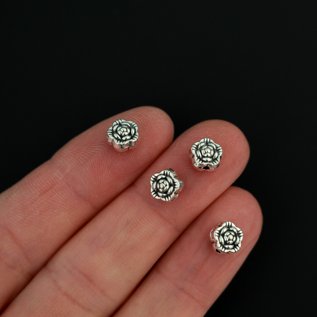 Metal Flower Beads, Antiqued Silver Tone Color 6x4mm, Hole is 1mm - 50pcs