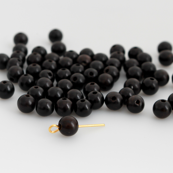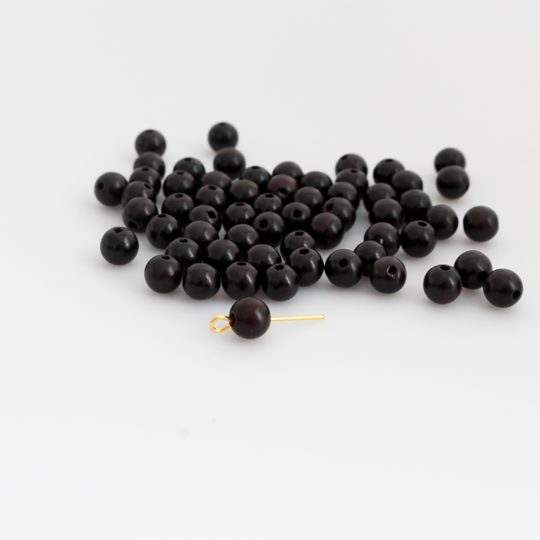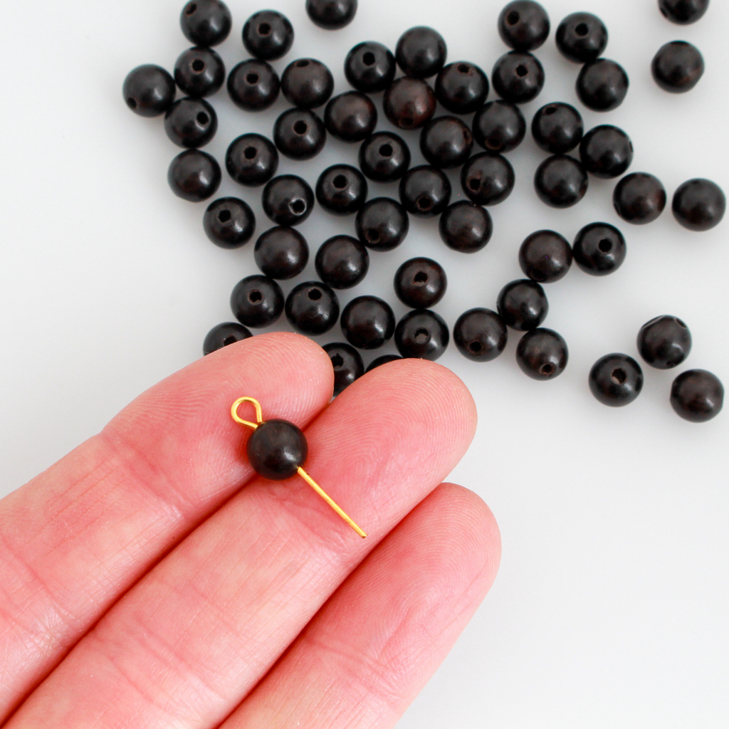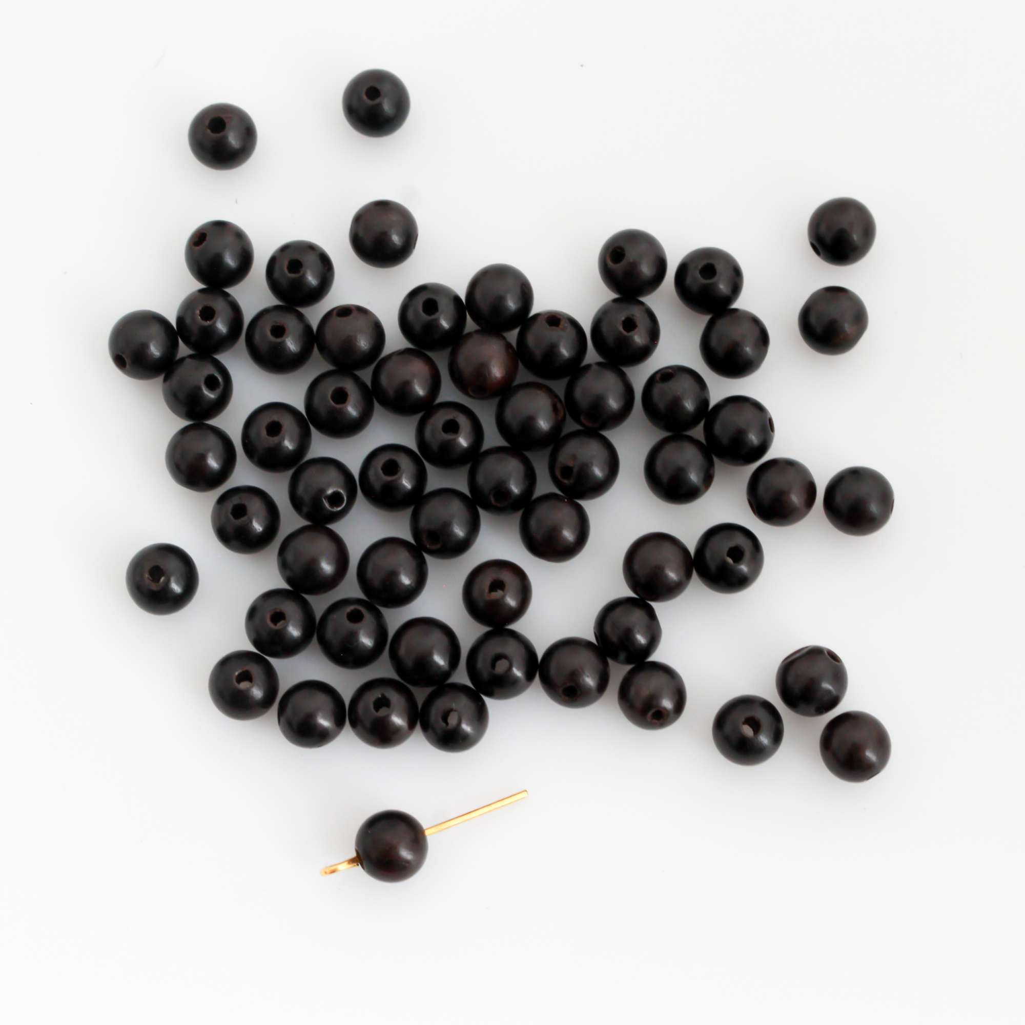 Natural Ebony Wood Beads 6mm Round, Waxed 60pcs