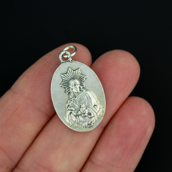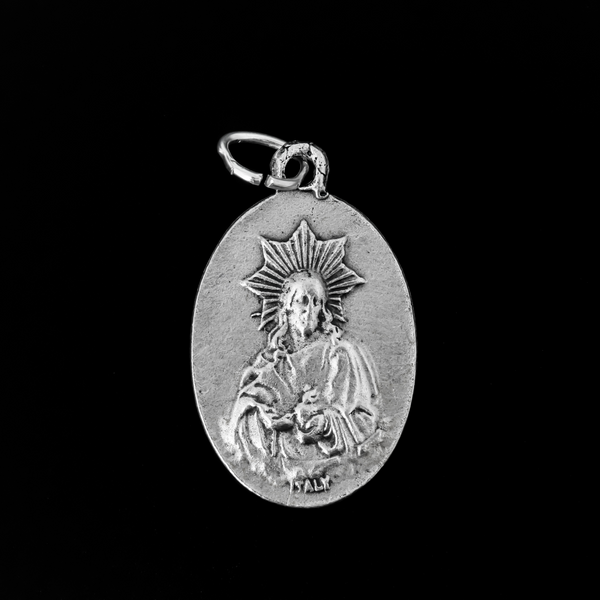 SKU: CM96Our Lady of Montserrat medal that depicts Mary on the front and the Sacred Heart of Jesus on the back. This detailed die-cast medal is made in the region of Italy that produces the finest quality medals in the world.
