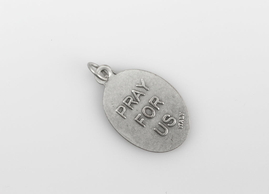 SKU: CM126Saint Dymphna, the virgin martyr traditionally known as the ‘demon slayer’. On this medal she is portrayed with her sword pinning a demon to the ground at her feet, an illustration of her title “demon slayer.” In ages past, she would have been invoked to conquer the literal demons thought to possess those with mental illnesses. The medal inscribed with "Pray For Us" on the back.