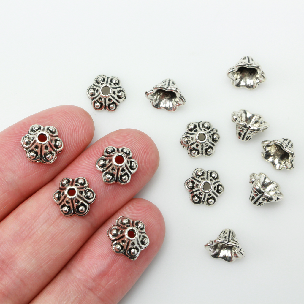 Silver Trumpet Bell Flower Bead Caps 10x5mm (Fits 8 - 10mm beads) - 50pcs