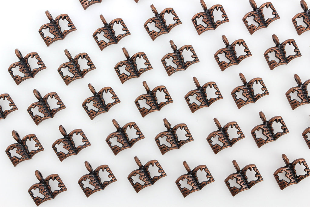 Holy Bible Charms with a Cross and Dove Cutout - Antiqued Copper 25pcs