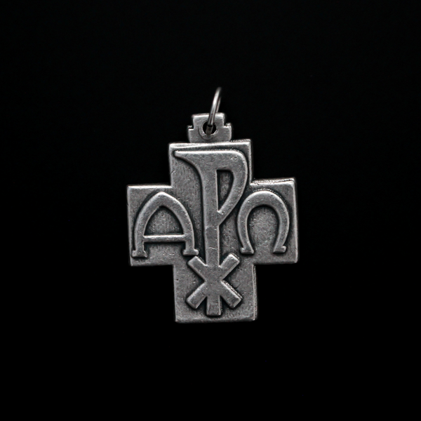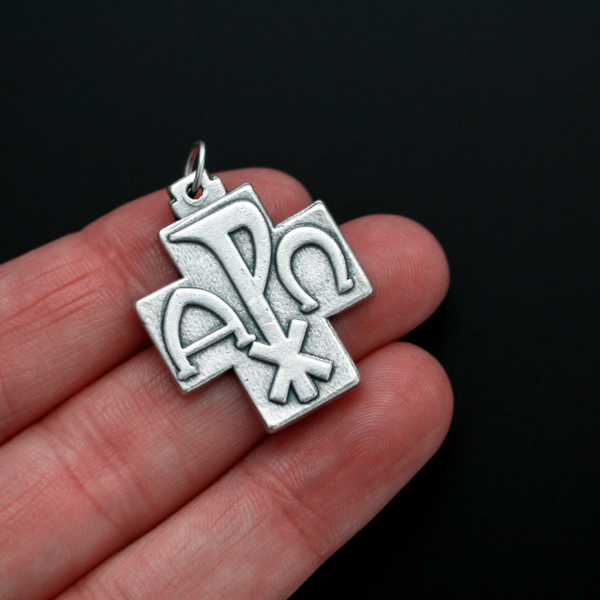 Jesus Alpha Omega Cross Pendant - Silver Chi Rho Jesus Christogram
