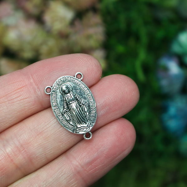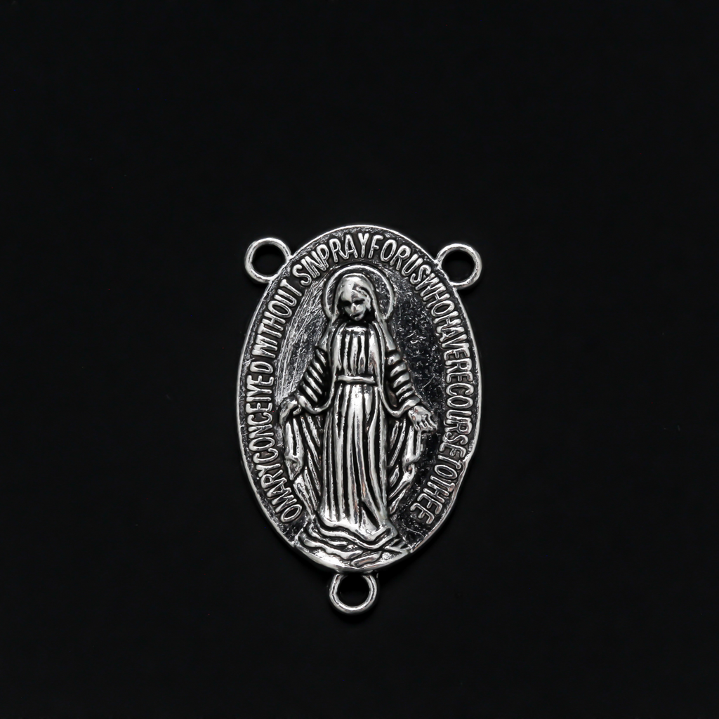Miraculous Medal rosary centerpiece in antique silver-tone color, 22mm long