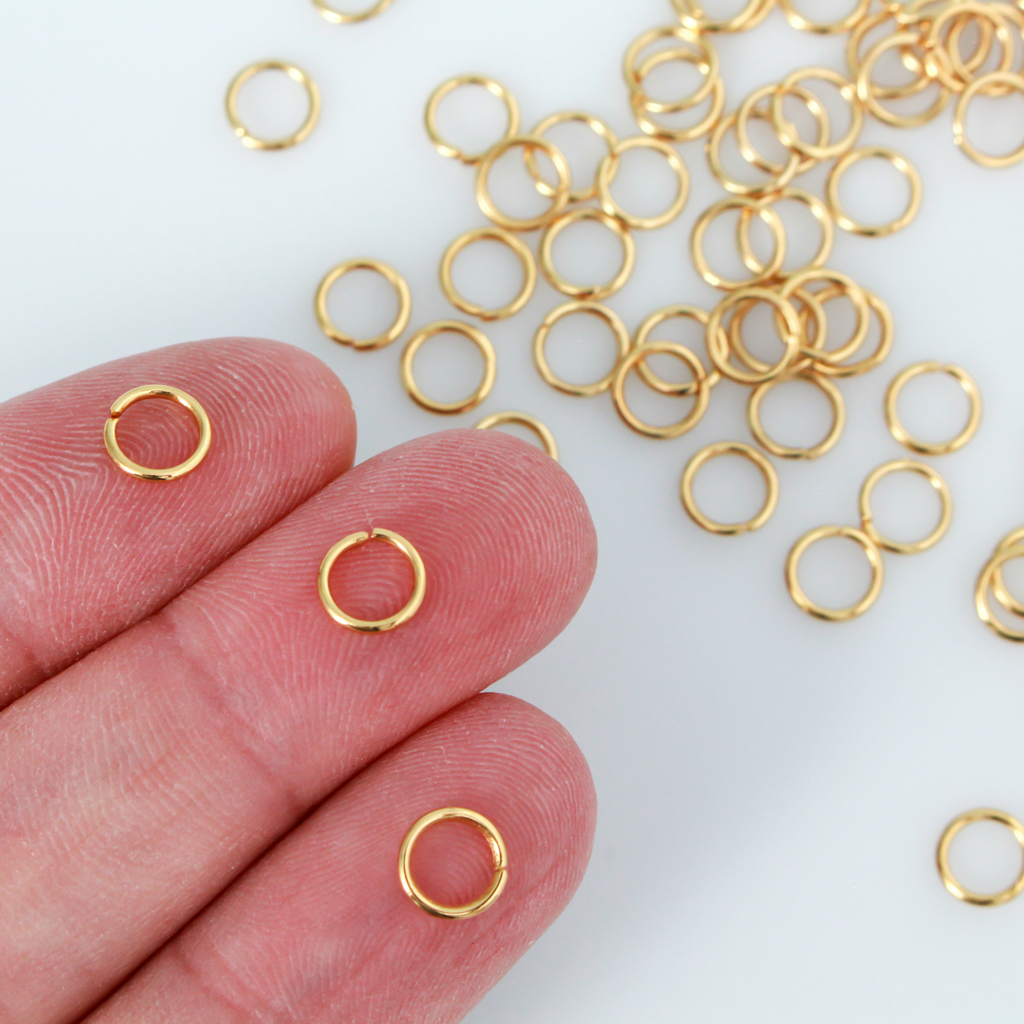 SKU: JS61A304 stainless steel jump rings that are 24K gold plated. They can be used to join the different components of your jewelry projects. A slight cut in the ring allows it to open and close easily.